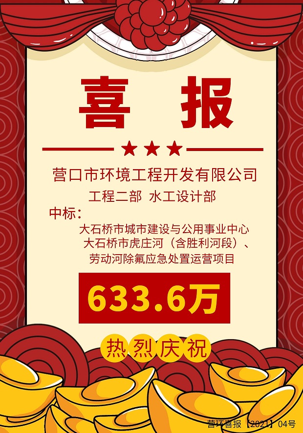 營口市環(huán)境工程開發(fā)有限公司中標(biāo)大石橋市城市建設(shè)與公用事業(yè)中心大石橋市虎莊河(含勝利河段)、勞動河除氟應(yīng)急處置運(yùn)勞項目