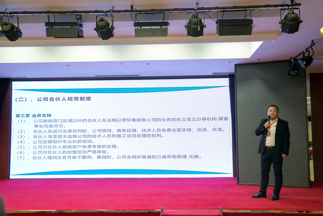 營口市環(huán)境工程開發(fā)有限公司賈喜東商務(wù)副總做《如何輕松達(dá)到事業(yè)另一個(gè)頂峰》報(bào)告,報(bào)告中就如何尋找項(xiàng)目、如何提高項(xiàng)目成功率及如何跟蹤已簽約項(xiàng)目、讓老客戶再次購買和轉(zhuǎn)介紹,進(jìn)行分析講解。
